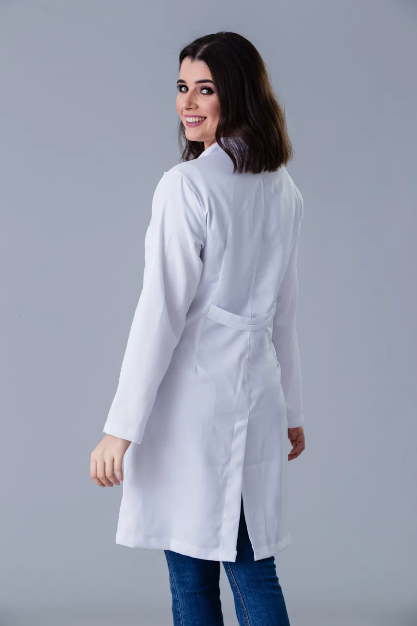 Um jaleco clássico com bolsos localizados em lugares estratégicos. O martingale pode deixar a peça do seu jeito, traz mobilidade e flexibilidade a todos que buscam um elegância e conforto.